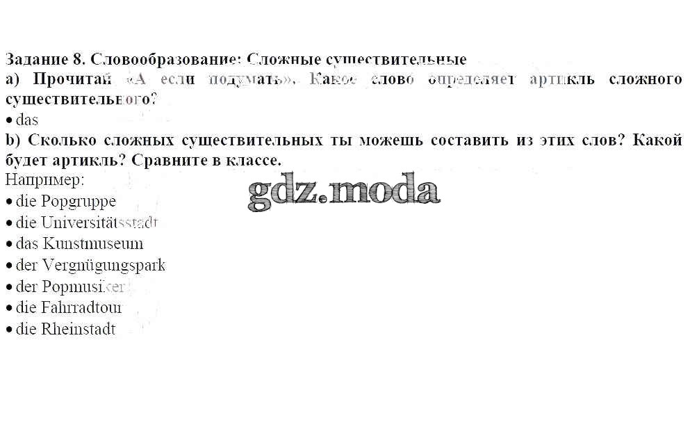 ГДЗ решение к заданию № 8 Немецкий язык 8 класс Аверин М.М. Просвещение 2016 ФГОС бесплатно на гдз.мода!