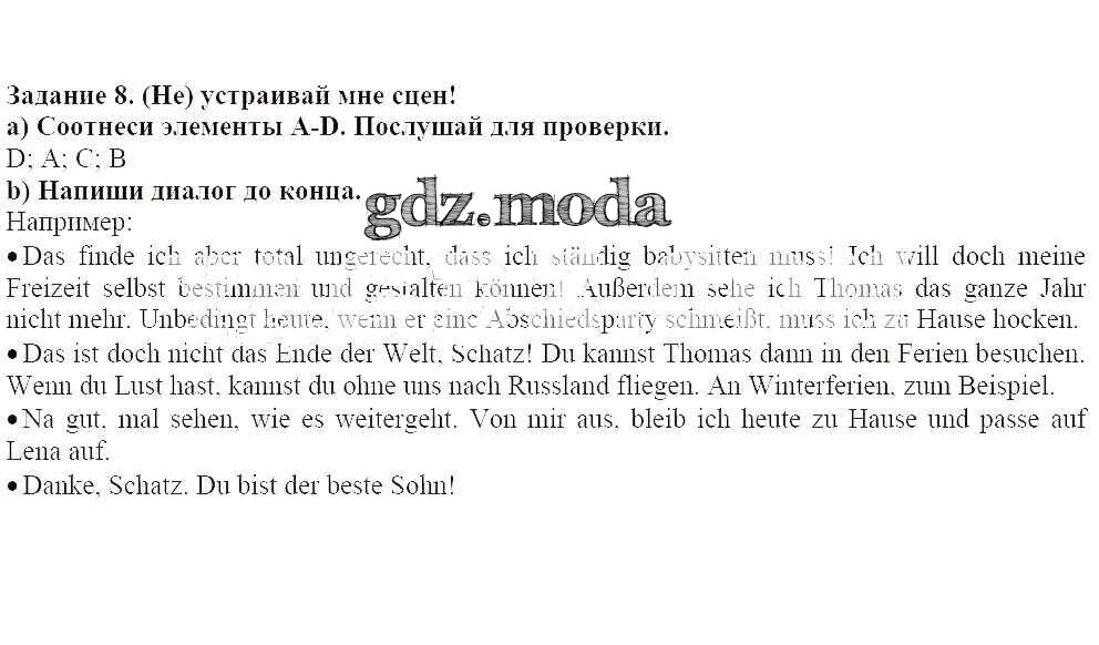 ГДЗ решение к заданию № 8 Немецкий язык 8 класс Аверин М.М. Просвещение 2016 ФГОС бесплатно на гдз.мода!