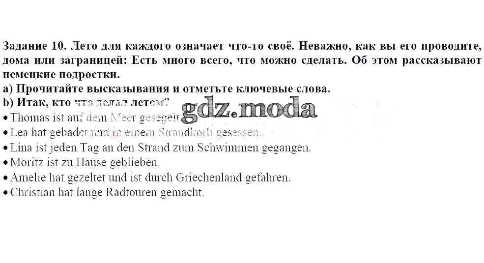 ГДЗ решение к заданию № 10 Немецкий язык 8 класс Бим И.Л. Просвещение 2014 ФГОС бесплатно на гдз.мода!
