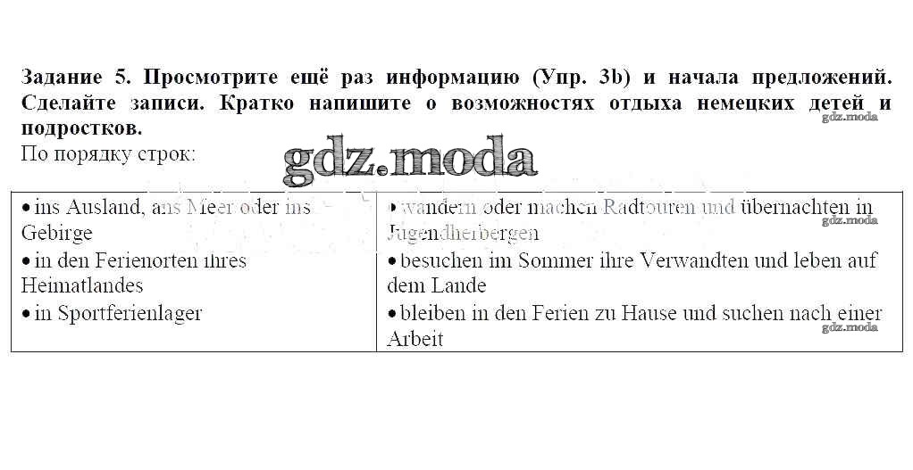ГДЗ решение к заданию № 5 Немецкий язык 8 класс Бим И.Л. Просвещение 2014 ФГОС бесплатно на гдз.мода!