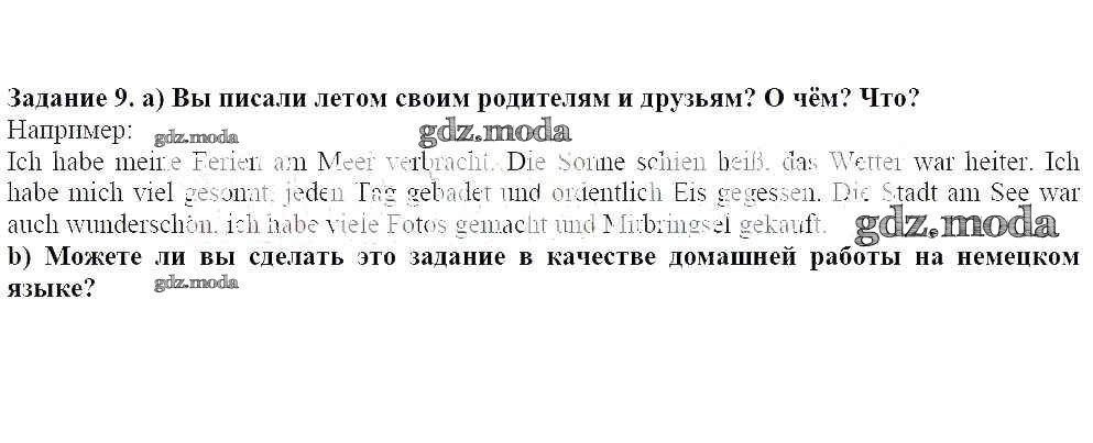 ГДЗ решение к заданию № 9 Немецкий язык 8 класс Бим И.Л. Просвещение 2014 ФГОС бесплатно на гдз.мода!
