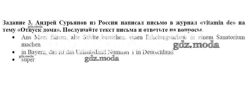ГДЗ решение к заданию № 3 Немецкий язык 8 класс Бим И.Л. Просвещение 2014 ФГОС бесплатно на гдз.мода!