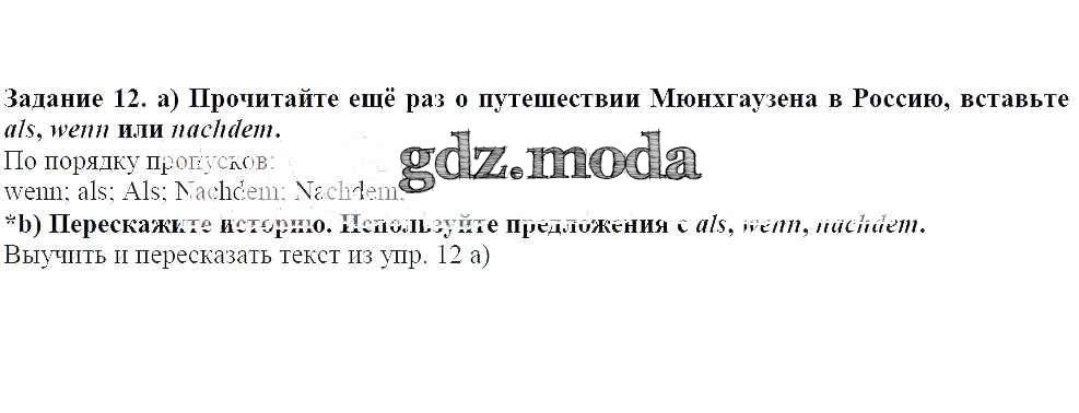 ГДЗ решение к заданию № 12 Немецкий язык 8 класс Бим И.Л. Просвещение 2014 ФГОС бесплатно на гдз.мода!