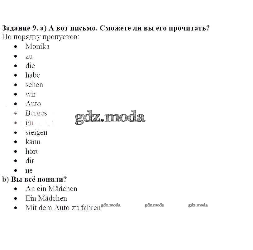 ГДЗ решение к заданию № 9 Немецкий язык 8 класс Бим И.Л. Просвещение 2014 ФГОС бесплатно на гдз.мода!