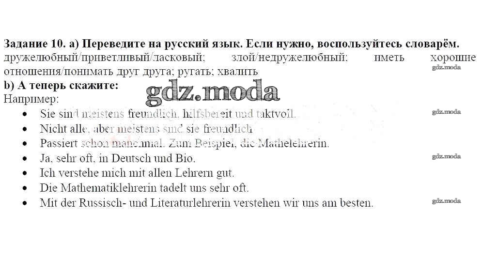 ГДЗ решение к заданию № 10 Немецкий язык 8 класс Бим И.Л. Просвещение 2014 ФГОС бесплатно на гдз.мода!