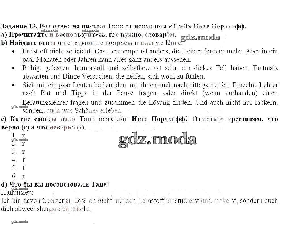 ГДЗ решение к заданию № 13 Немецкий язык 8 класс Бим И.Л. Просвещение 2014 ФГОС бесплатно на гдз.мода!