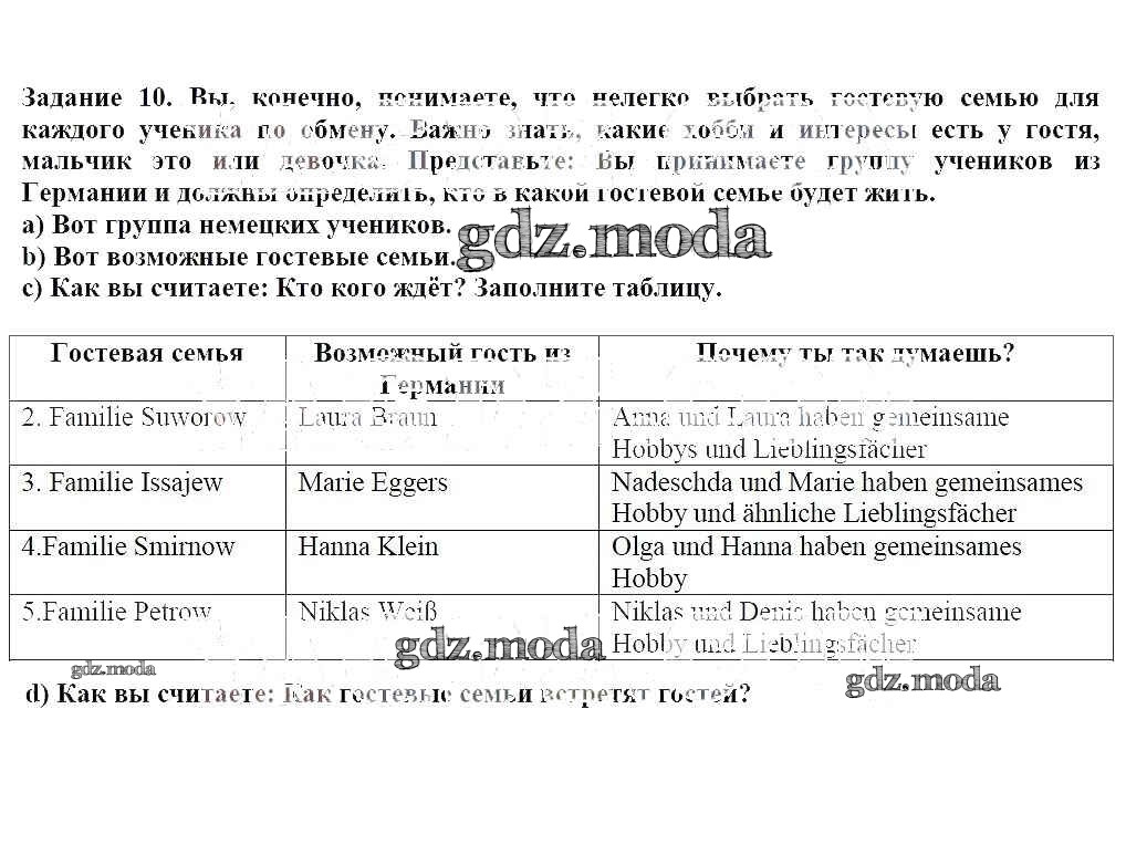 ГДЗ решение к заданию № 10 Немецкий язык 8 класс Бим И.Л. Просвещение 2014 ФГОС бесплатно на гдз.мода!