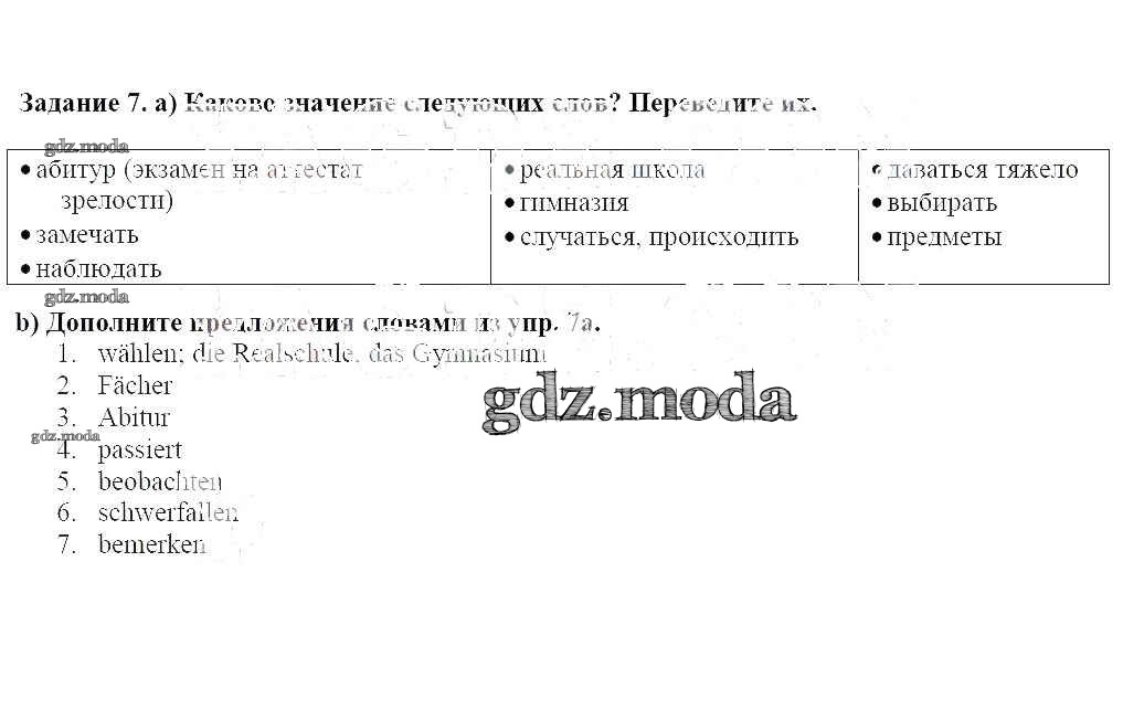 ГДЗ решение к заданию № 7 Немецкий язык 8 класс Бим И.Л. Просвещение 2014 ФГОС бесплатно на гдз.мода!