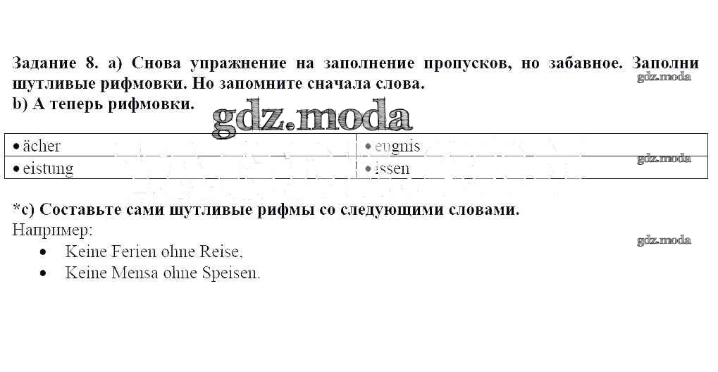 ГДЗ решение к заданию № 8 Немецкий язык 8 класс Бим И.Л. Просвещение 2014 ФГОС бесплатно на гдз.мода!