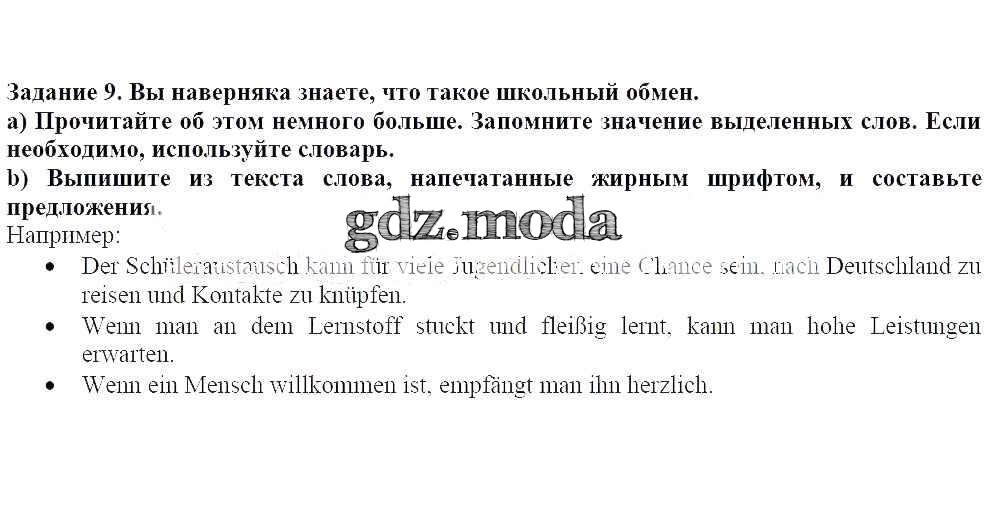 ГДЗ решение к заданию № 9 Немецкий язык 8 класс Бим И.Л. Просвещение 2014 ФГОС бесплатно на гдз.мода!