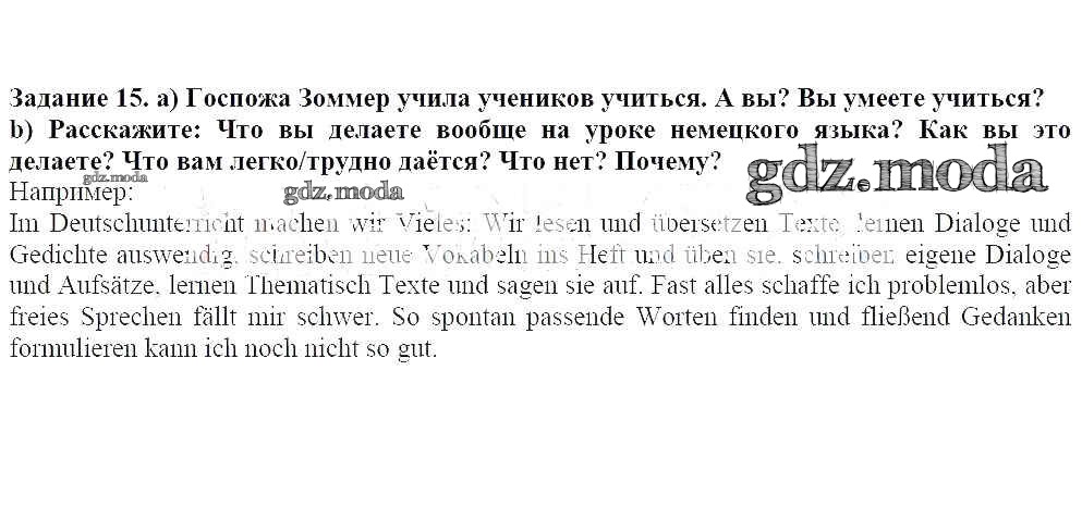 ГДЗ решение к заданию № 15 Немецкий язык 8 класс Бим И.Л. Просвещение 2014 ФГОС бесплатно на гдз.мода!