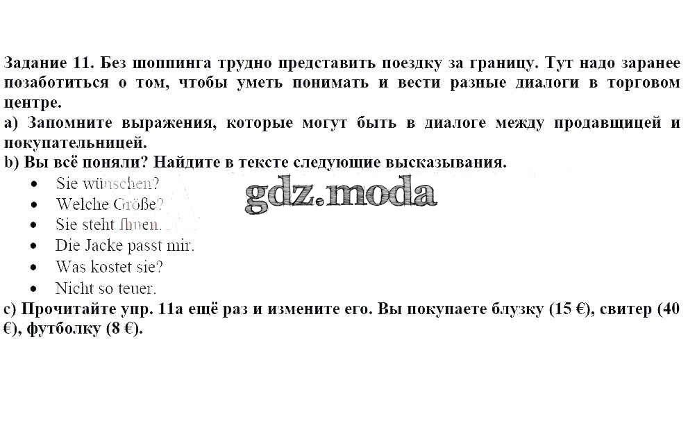 ГДЗ решение к заданию № 11 Немецкий язык 8 класс Бим И.Л. Просвещение 2014 ФГОС бесплатно на гдз.мода!
