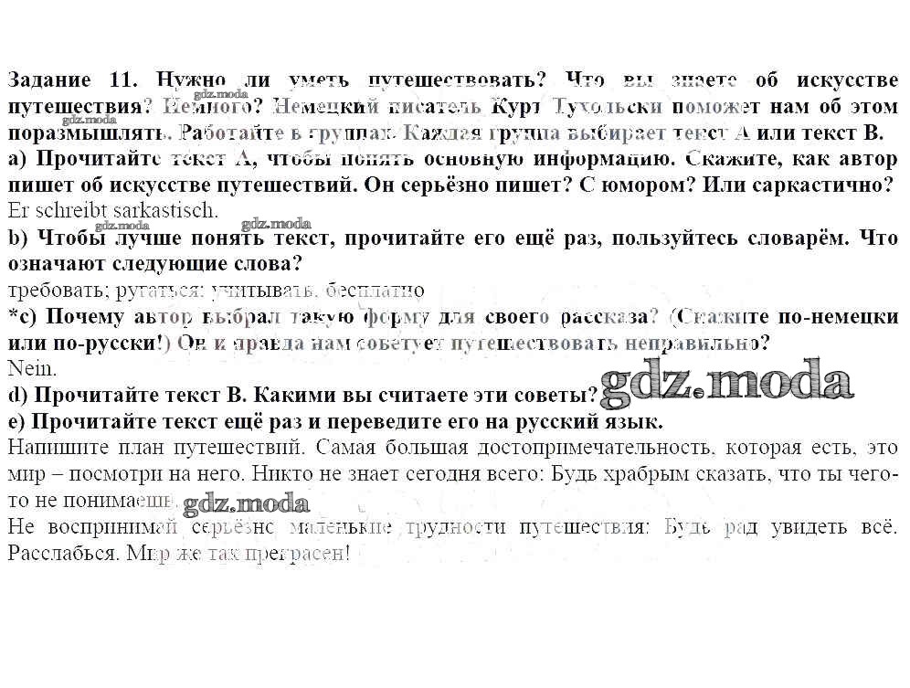 ГДЗ решение к заданию № 11 Немецкий язык 8 класс Бим И.Л. Просвещение 2014 ФГОС бесплатно на гдз.мода!