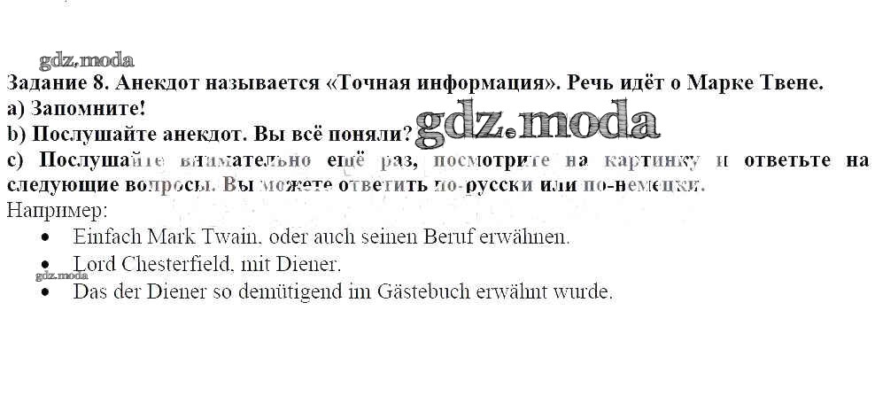 ГДЗ решение к заданию № 8 Немецкий язык 8 класс Бим И.Л. Просвещение 2014 ФГОС бесплатно на гдз.мода!