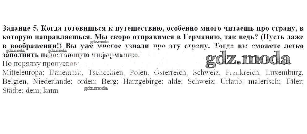 ГДЗ решение к заданию № 5 Немецкий язык 8 класс Бим И.Л. Просвещение 2014 ФГОС бесплатно на гдз.мода!