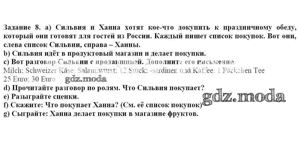 ГДЗ решение к заданию № 8 Немецкий язык 8 класс Бим И.Л. Просвещение 2014 ФГОС бесплатно на гдз.мода!