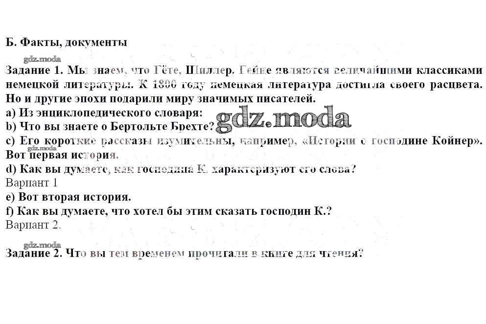 ОТВЕТ на задание № Из немецкой классики Учебник по Немецкому языку 8 класс Бим