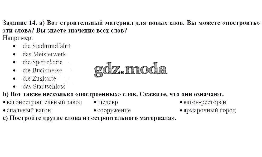 ГДЗ решение к заданию № 14 Немецкий язык 8 класс Бим И.Л. Просвещение 2014 ФГОС бесплатно на гдз.мода!