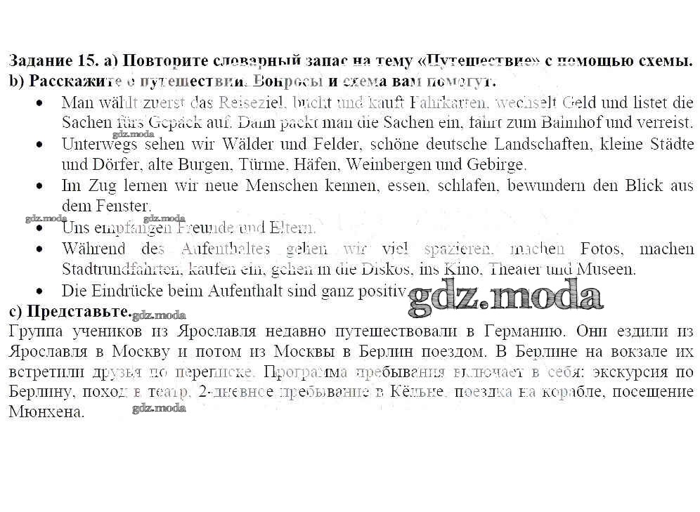 ГДЗ решение к заданию № 15 Немецкий язык 8 класс Бим И.Л. Просвещение 2014 ФГОС бесплатно на гдз.мода!
