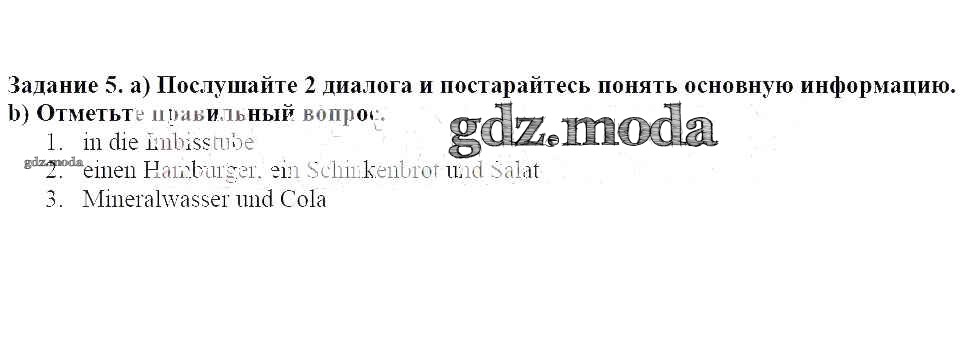 ГДЗ решение к заданию № 5 Немецкий язык 8 класс Бим И.Л. Просвещение 2014 ФГОС бесплатно на гдз.мода!