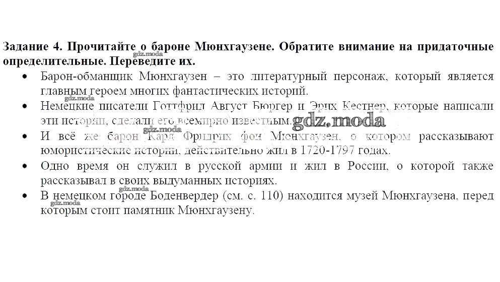 ГДЗ решение к заданию № 4 Немецкий язык 8 класс Бим И.Л. Просвещение 2014 ФГОС бесплатно на гдз.мода!