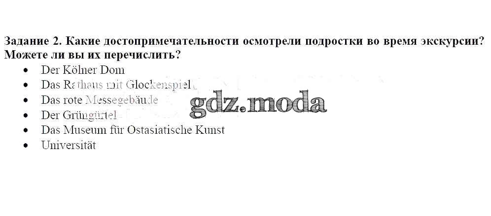 ГДЗ решение к заданию № 2 Немецкий язык 8 класс Бим И.Л. Просвещение 2014 ФГОС бесплатно на гдз.мода!