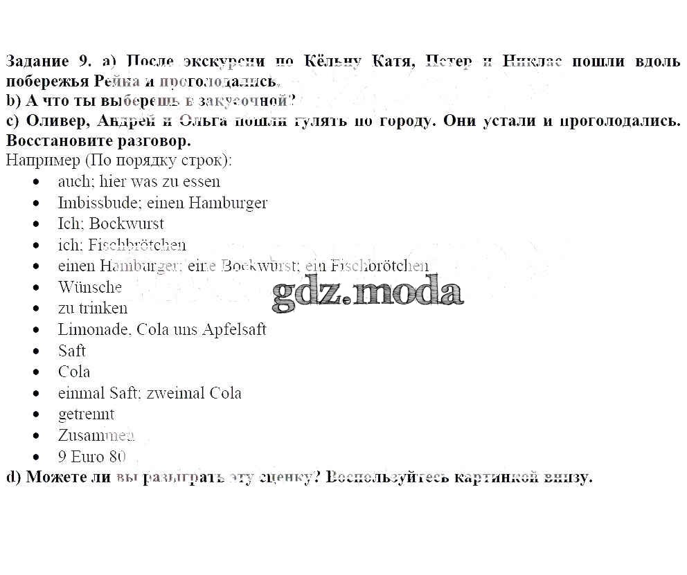 ГДЗ решение к заданию № 9 Немецкий язык 8 класс Бим И.Л. Просвещение 2014 ФГОС бесплатно на гдз.мода!