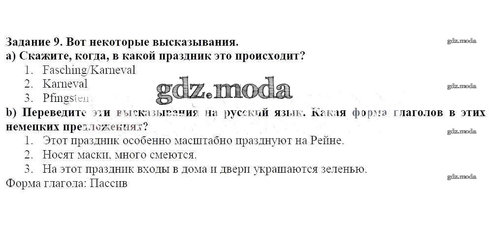 ГДЗ решение к заданию № 9 Немецкий язык 8 класс Бим И.Л. Просвещение 2014 ФГОС бесплатно на гдз.мода!