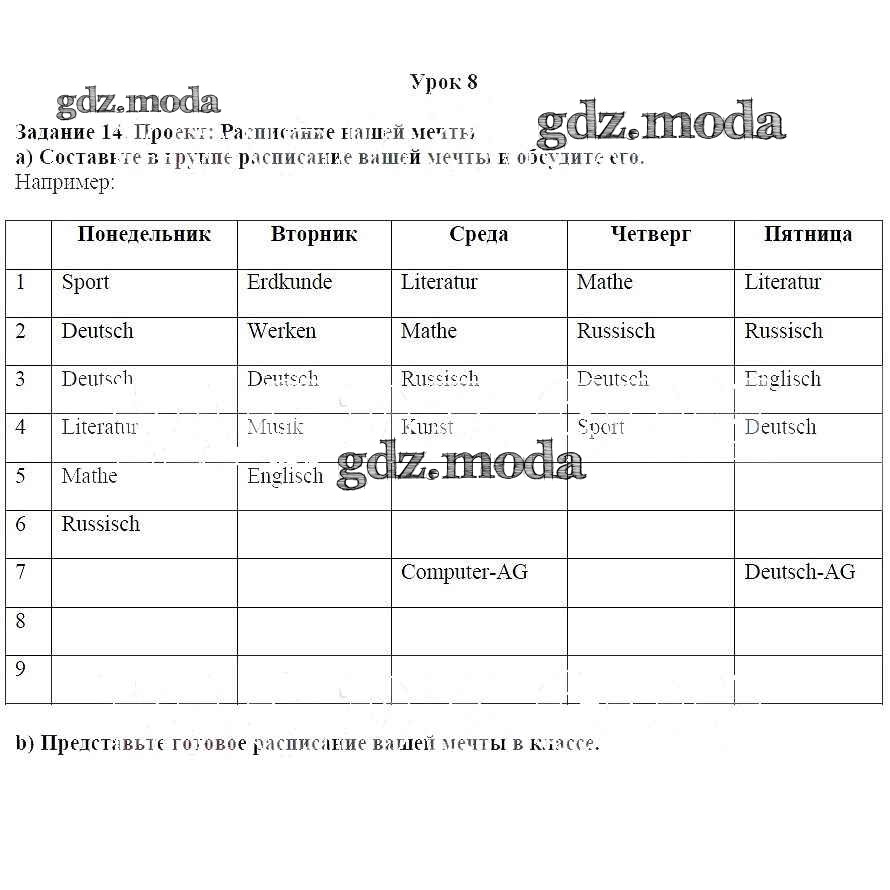 ГДЗ решение к заданию № 14 Немецкий язык 8 класс Wunderkinder Plus Радченко О.А. Просвещение 2019 Углубленный уровень ФГОС бесплатно на гдз.мода!
