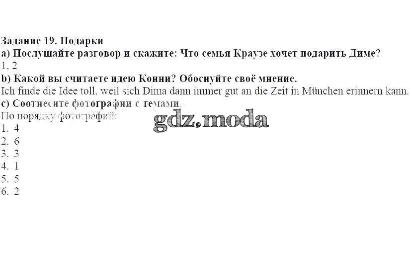 ГДЗ решение к заданию № 19 Немецкий язык 8 класс Wunderkinder Plus Радченко О.А. Просвещение 2019 Углубленный уровень ФГОС бесплатно на гдз.мода!