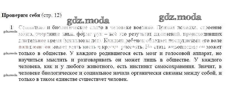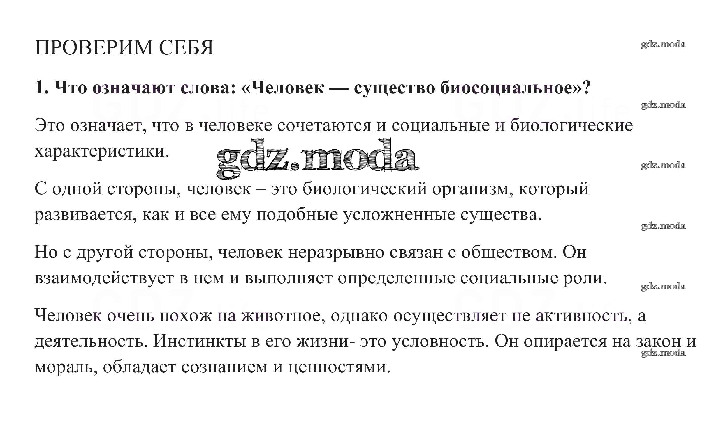 ГДЗ решение к заданию № 1 Обществознание 8 класс Боголюбов Л.Н. Просвещение 2014 ФГОС бесплатно на гдз.мода!