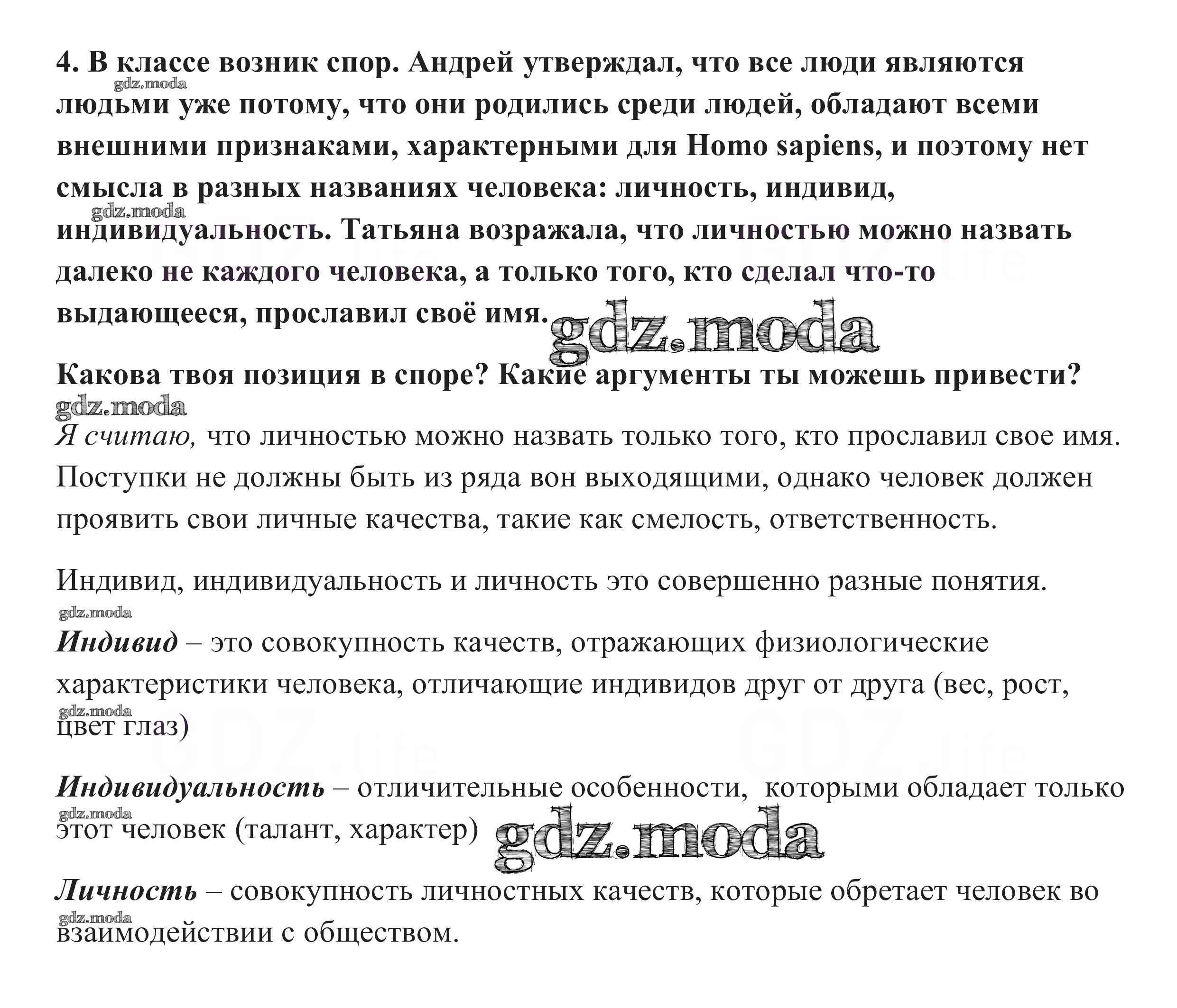 ГДЗ решение к заданию № 4 Обществознание 8 класс Боголюбов Л.Н. Просвещение 2014 ФГОС бесплатно на гдз.мода!