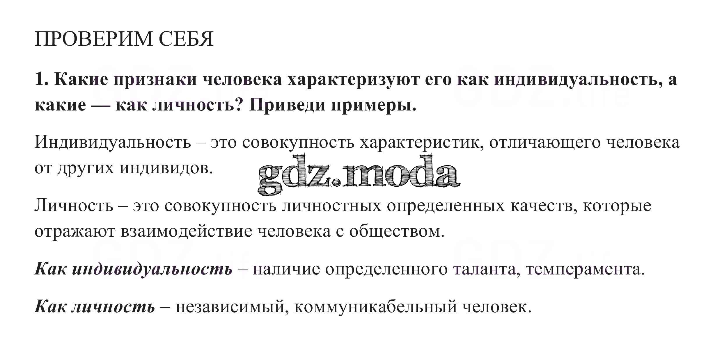 ГДЗ решение к заданию № 1 Обществознание 8 класс Боголюбов Л.Н. Просвещение 2014 ФГОС бесплатно на гдз.мода!