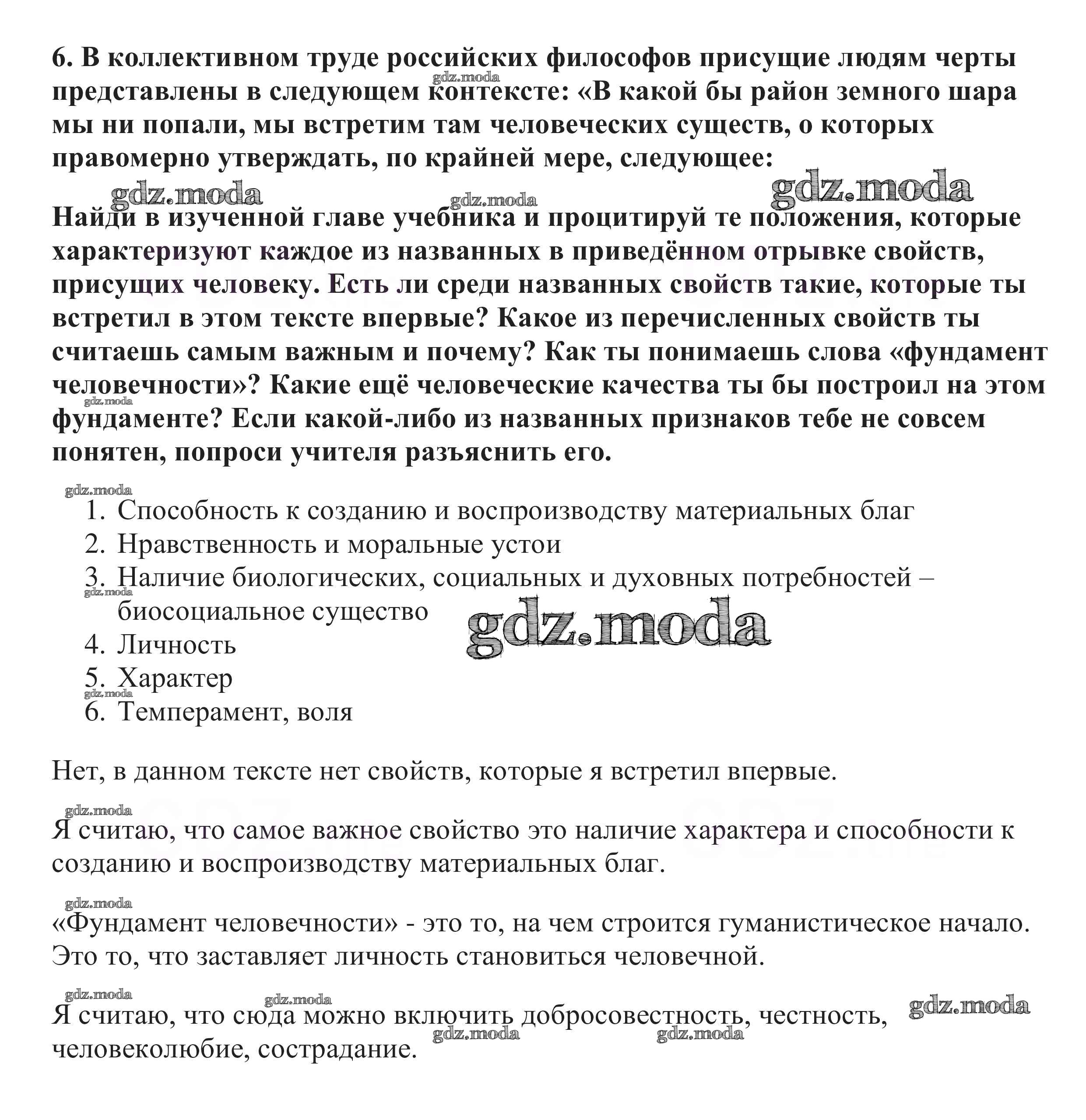 ГДЗ решение к заданию № 6 Обществознание 8 класс Боголюбов Л.Н. Просвещение 2014 ФГОС бесплатно на гдз.мода!