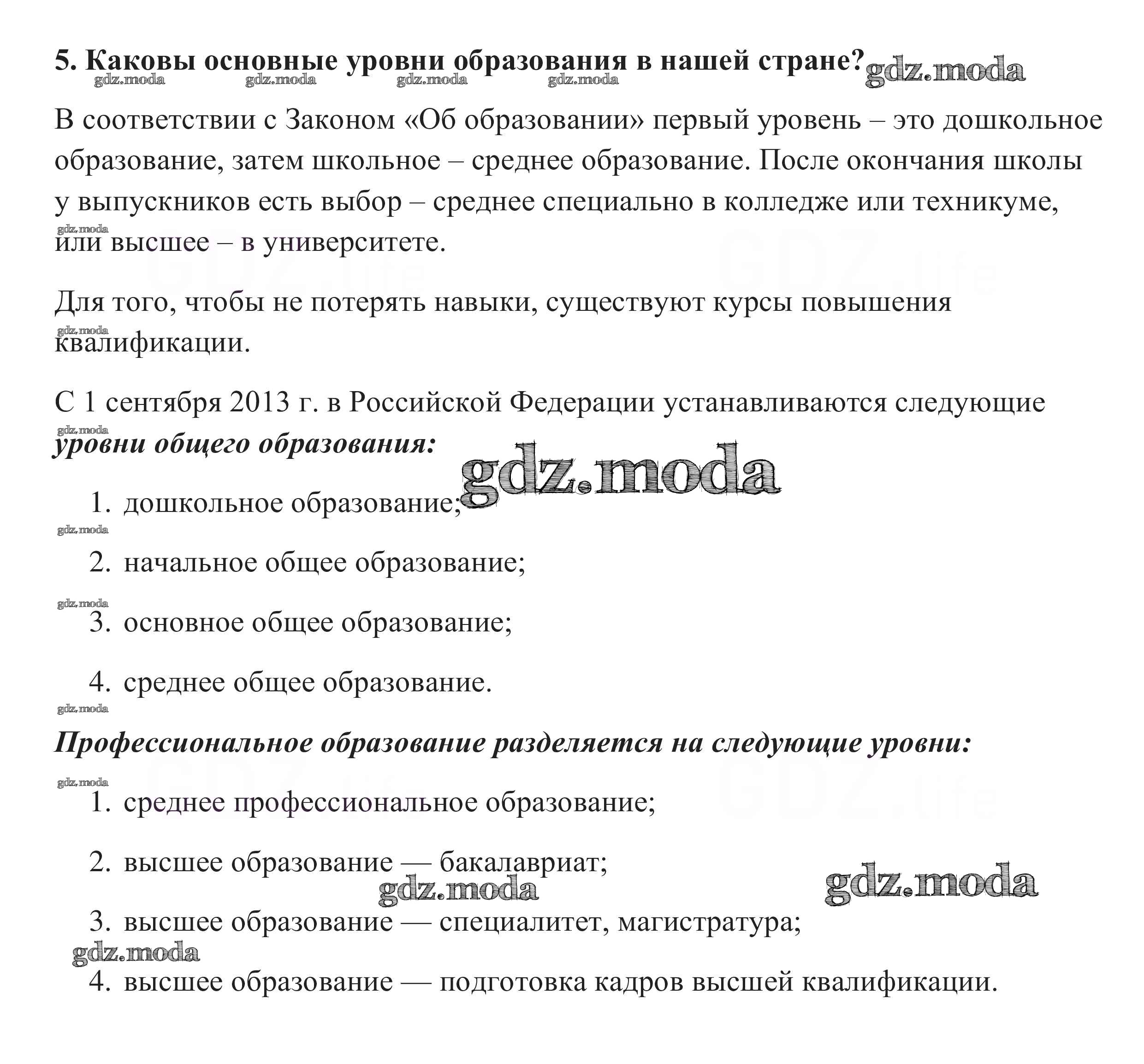 ГДЗ решение к заданию № 5 Обществознание 8 класс Боголюбов Л.Н. Просвещение 2014 ФГОС бесплатно на гдз.мода!