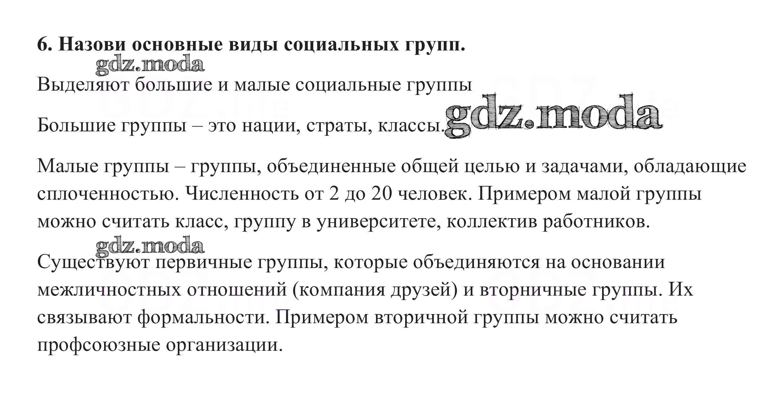 ГДЗ решение к заданию № 6 Обществознание 8 класс Боголюбов Л.Н. Просвещение 2014 ФГОС бесплатно на гдз.мода!