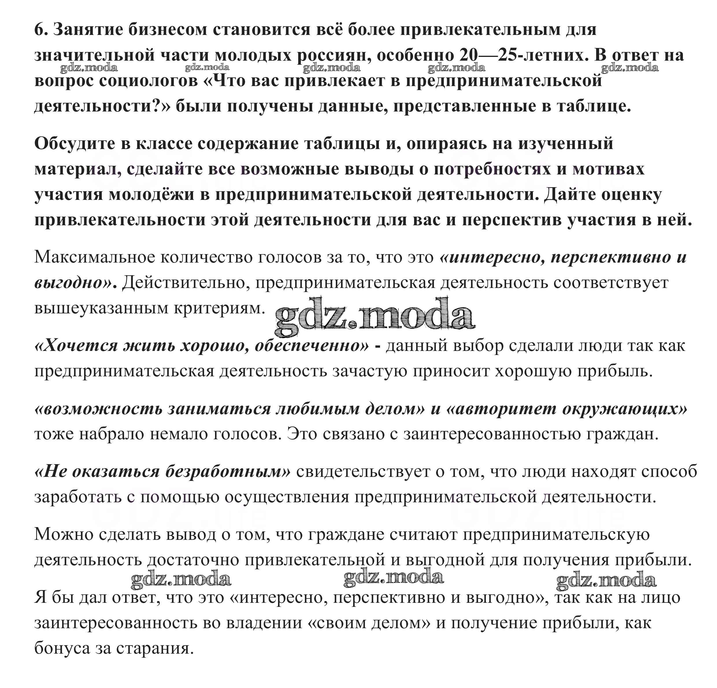ГДЗ решение к заданию № 6 Обществознание 8 класс Боголюбов Л.Н. Просвещение 2014 ФГОС бесплатно на гдз.мода!