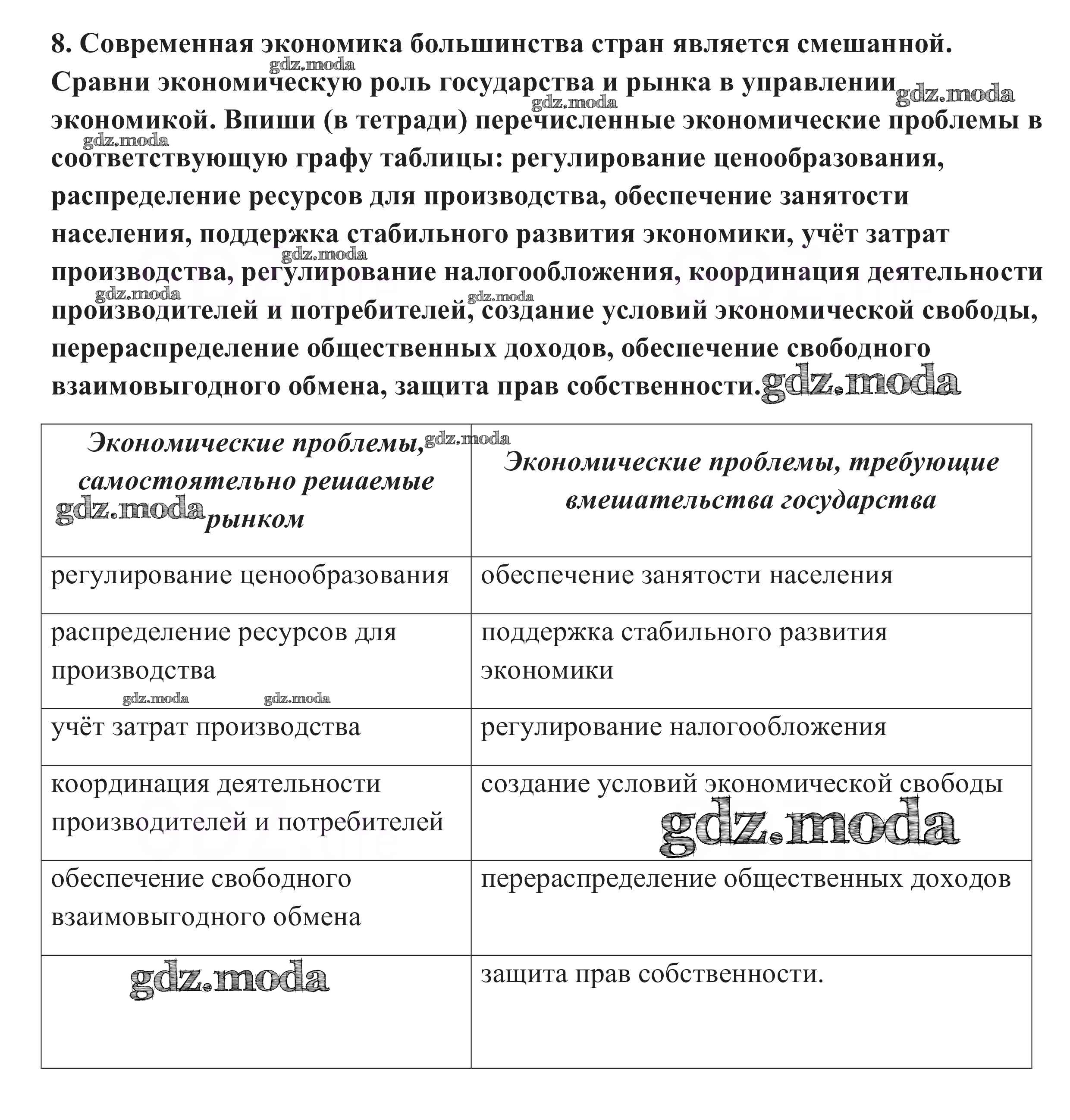 ГДЗ решение к заданию № 8 Обществознание 8 класс Боголюбов Л.Н. Просвещение 2014 ФГОС бесплатно на гдз.мода!