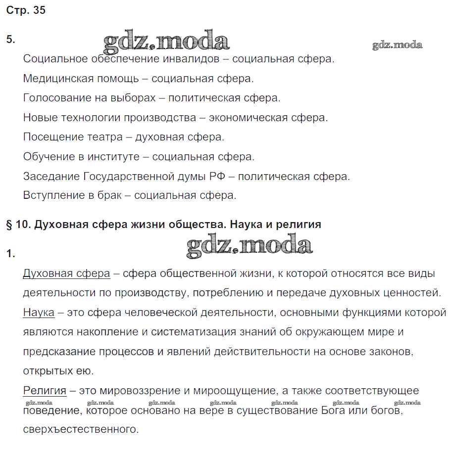 ГДЗ решение к заданию № 35 Обществознание 8 класс рабочая тетрадь Федорова С.А. Дрофа 2019 ФГОС бесплатно на гдз.мода!