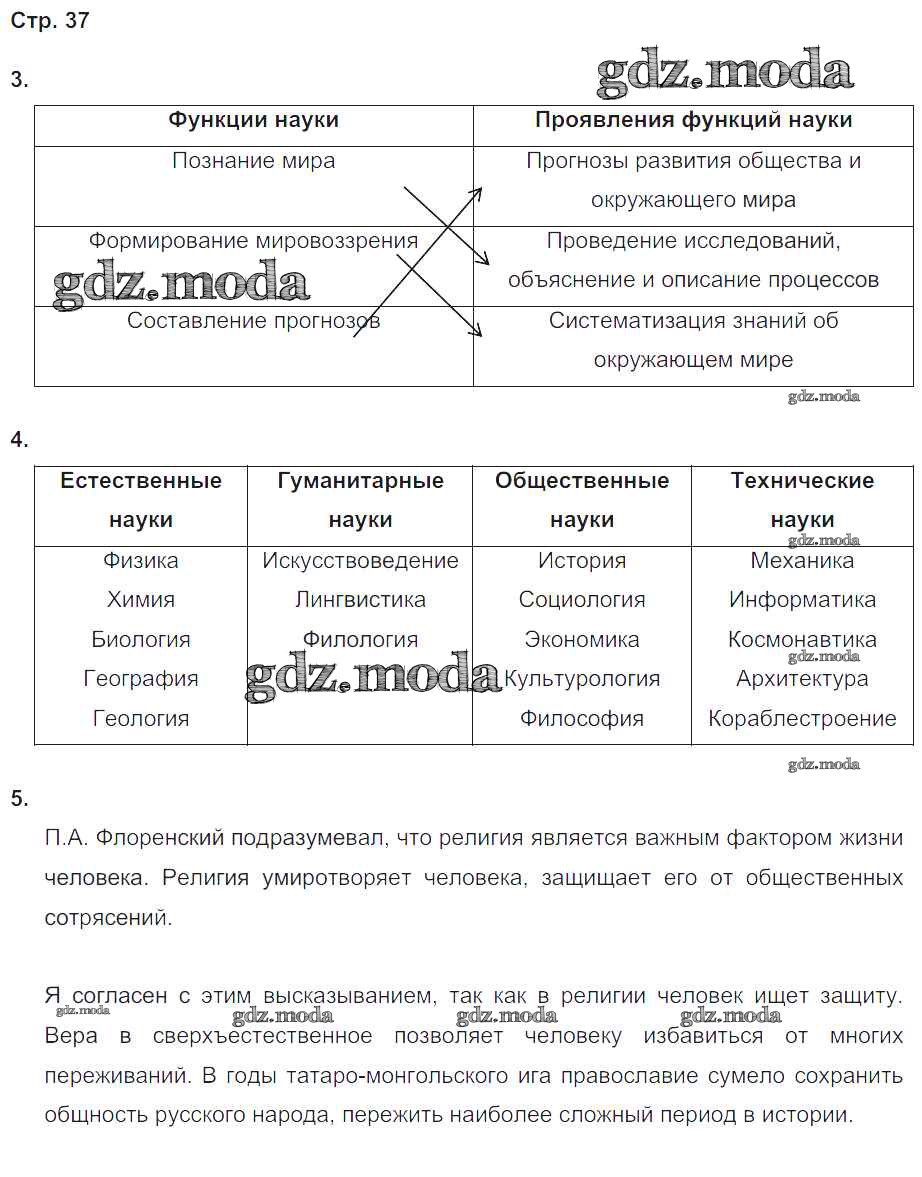 ГДЗ решение к заданию № 37 Обществознание 8 класс рабочая тетрадь Федорова С.А. Дрофа 2019 ФГОС бесплатно на гдз.мода!