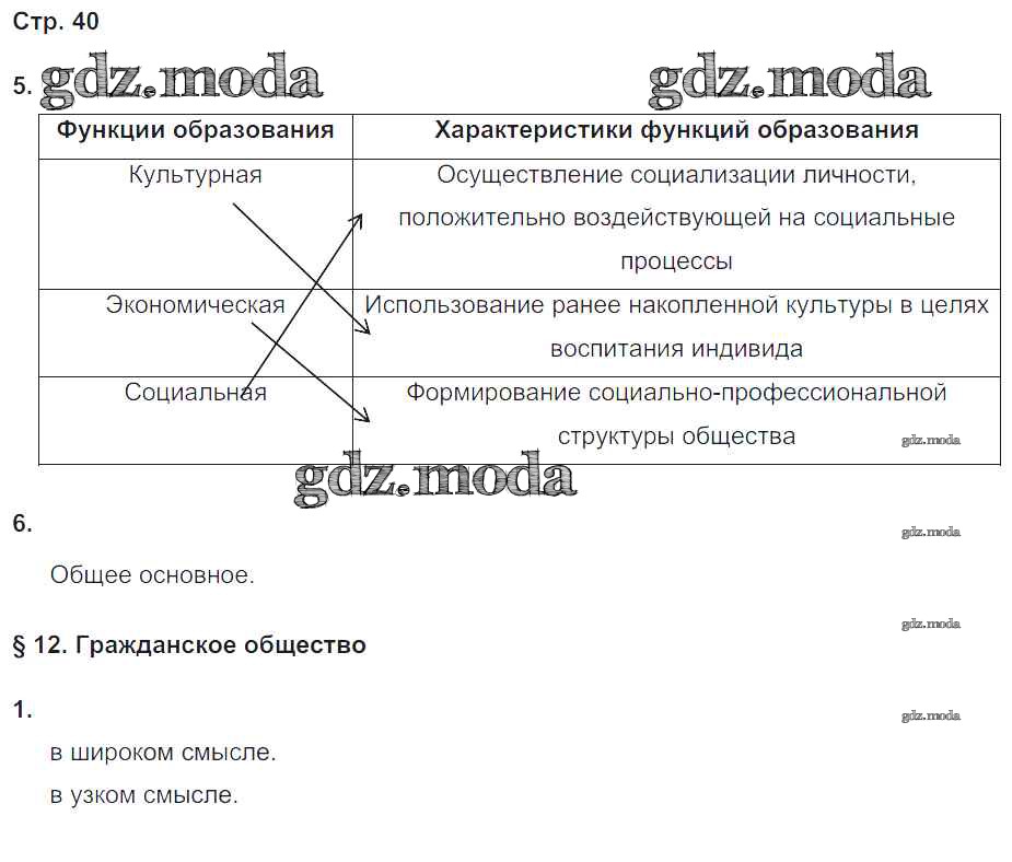 ГДЗ решение к заданию № 40 Обществознание 8 класс рабочая тетрадь Федорова С.А. Дрофа 2019 ФГОС бесплатно на гдз.мода!