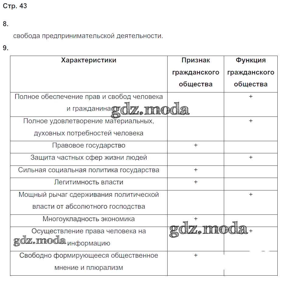 ГДЗ решение к заданию № 43 Обществознание 8 класс рабочая тетрадь Федорова С.А. Дрофа 2019 ФГОС бесплатно на гдз.мода!