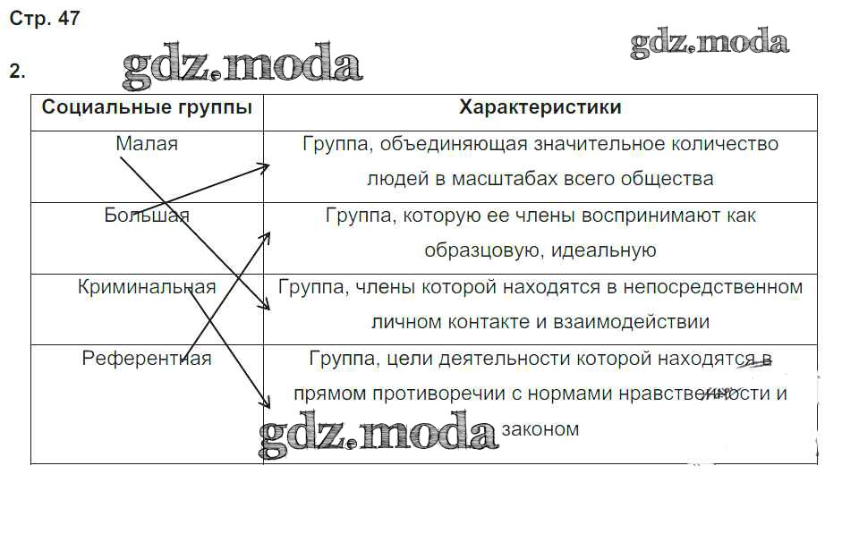 ГДЗ решение к заданию № 47 Обществознание 8 класс рабочая тетрадь Федорова С.А. Дрофа 2019 ФГОС бесплатно на гдз.мода!