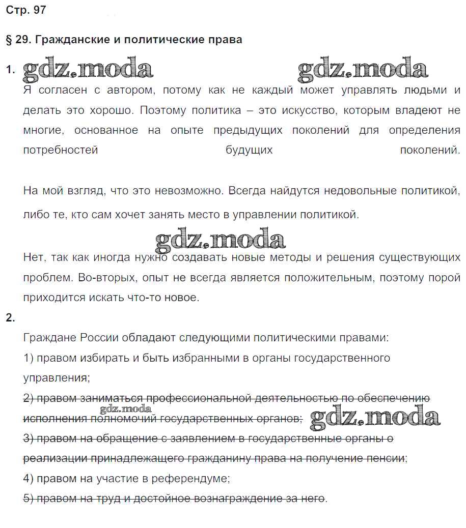 ГДЗ решение к заданию № 97 Обществознание 8 класс рабочая тетрадь Федорова С.А. Дрофа 2019 ФГОС бесплатно на гдз.мода!