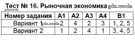 ГДЗ решение к заданию № Тест №16. Рыночная экономика Обществознание 8 класс контрольно-измерительные материалы Поздеев А.В. ВАКО 2017 ФГОС бесплатно на гдз.мода!