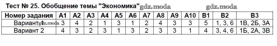 ГДЗ решение к заданию № Тест №25. Обобщение темы - Экономика Обществознание 8 класс контрольно-измерительные материалы Поздеев А.В. ВАКО 2017 ФГОС бесплатно на гдз.мода!