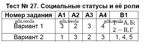 ГДЗ решение к заданию № Тест №27. Социальные статусы и её роли Обществознание 8 класс контрольно-измерительные материалы Поздеев А.В. ВАКО 2017 ФГОС бесплатно на гдз.мода!