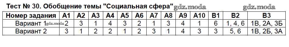 ГДЗ решение к заданию № Тест №30. Обобщение темы - Социальная сфера Обществознание 8 класс контрольно-измерительные материалы Поздеев А.В. ВАКО 2017 ФГОС бесплатно на гдз.мода!