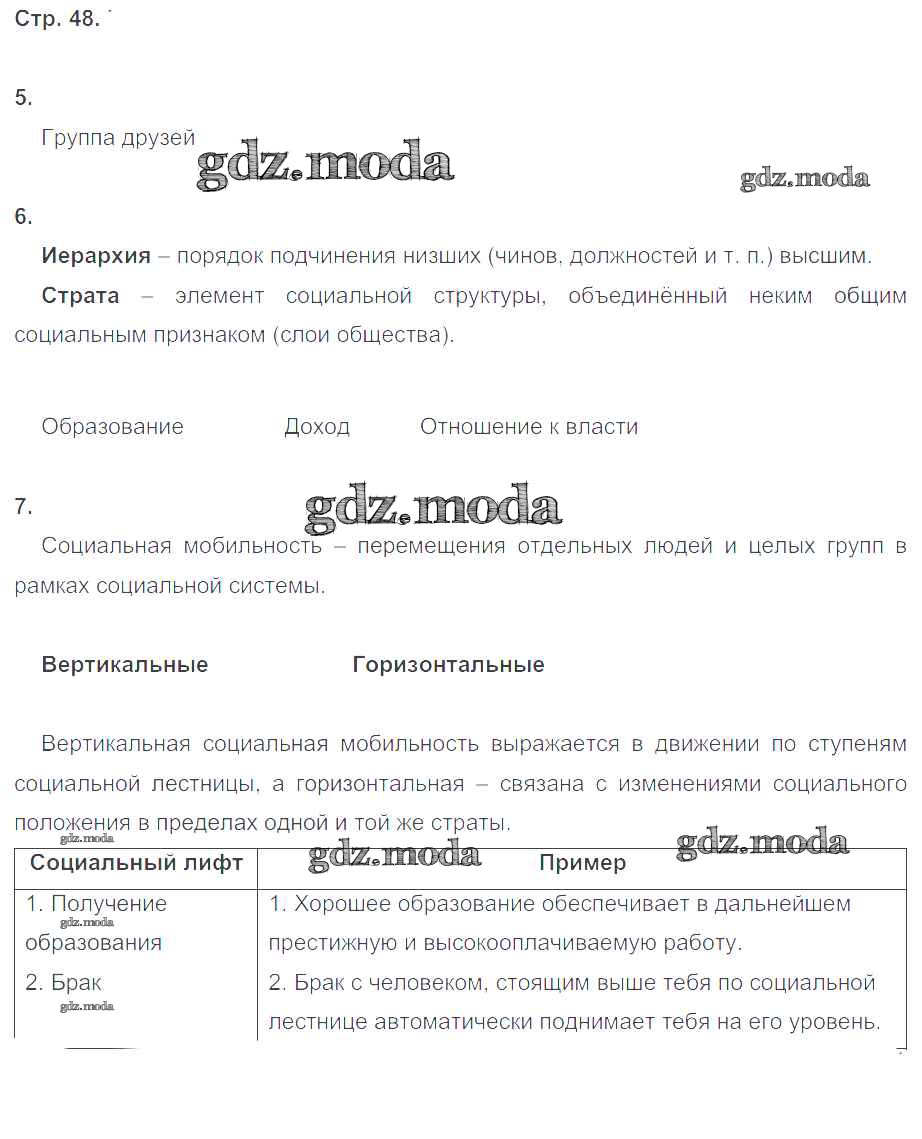 ГДЗ решение к заданию № стр.48 Обществознание 8 класс рабочая тетрадь Котова О.А. Просвещение 2017 ФГОС бесплатно на гдз.мода!