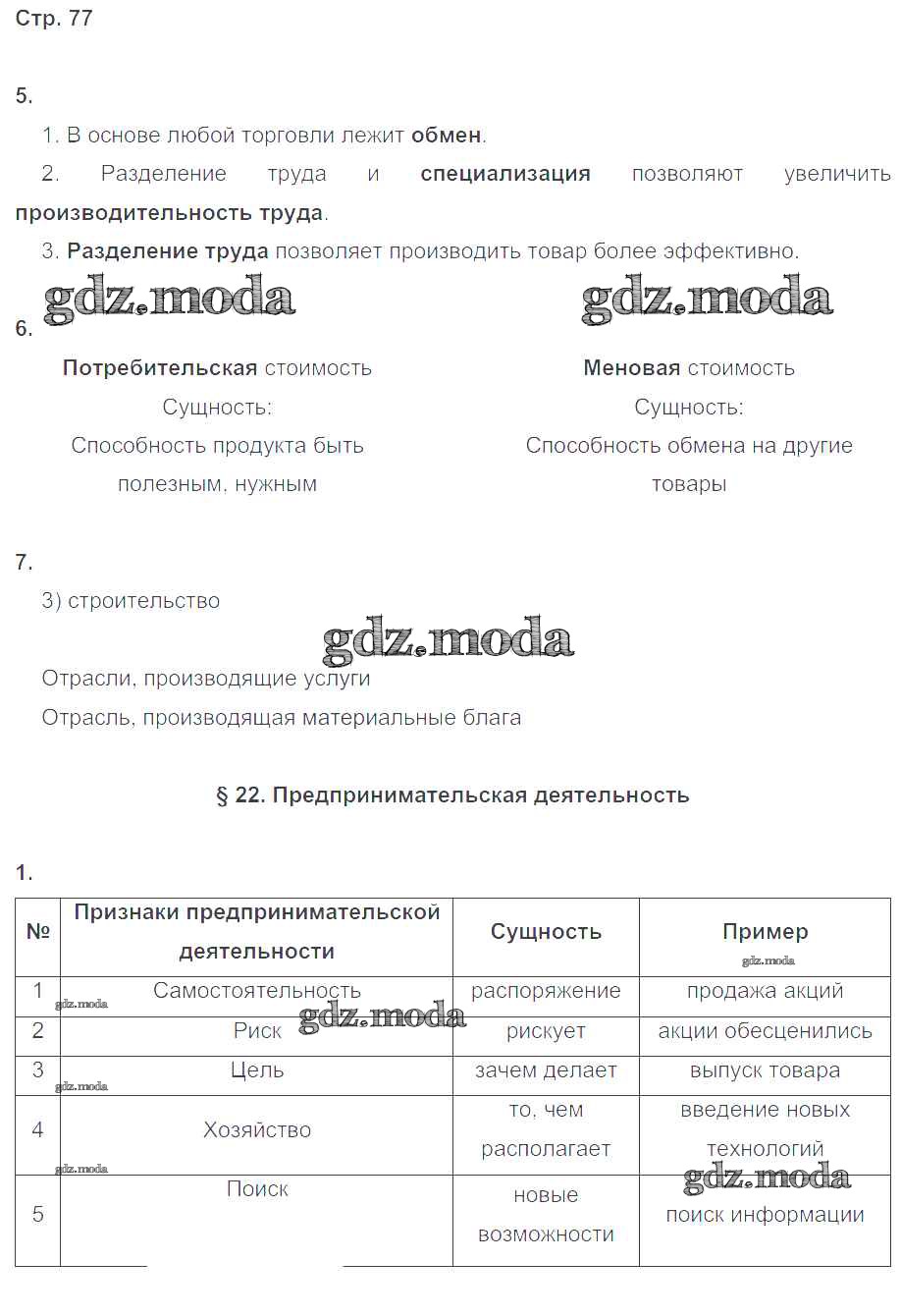 ГДЗ решение к заданию № стр.77 Обществознание 8 класс рабочая тетрадь Котова О.А. Просвещение 2017 ФГОС бесплатно на гдз.мода!